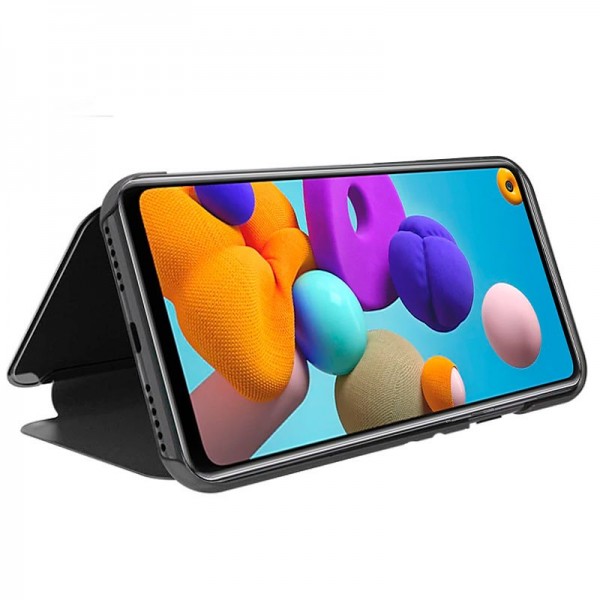 Funda Flip Cover Clear View para Samsung A217 Galaxy A21s de apertura lateral tipo libro.